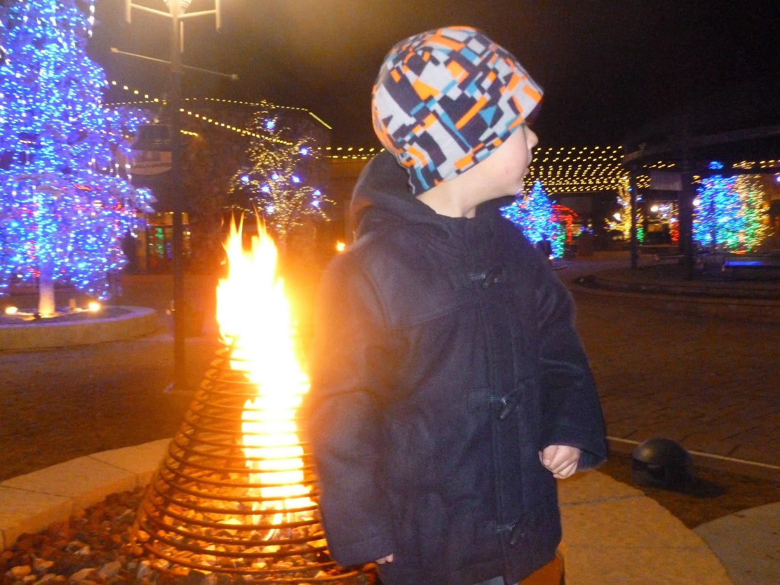 Max was really excited to meet Santa. The Santa at the Riverwoods mall was the best Santa! No line, no professional photos, so it was completely free and he had a great set-up! Max ran up the ramp, steped to the side and talked to Santa from a distance. When Santa asked what he wanted for Christmas, Max excaimed, "Presents!" As Max refused to sit on his lap, Santa asked for a hug and just picked him up when he gave it to him.